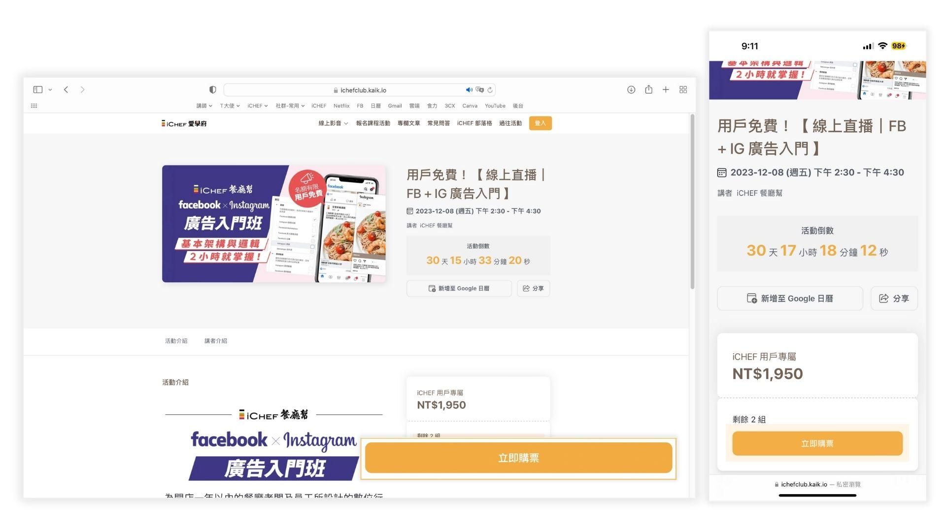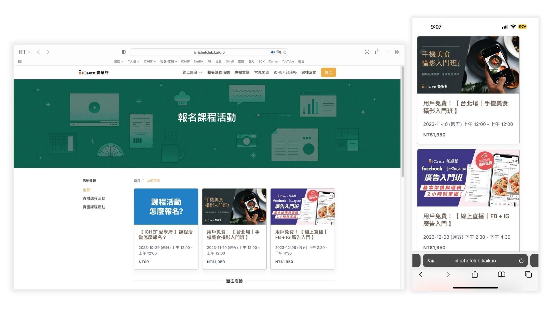 部分課程活動有開放非 iCHEF 用戶報名參與,請依課程活動說明為主,並直接報名即可。