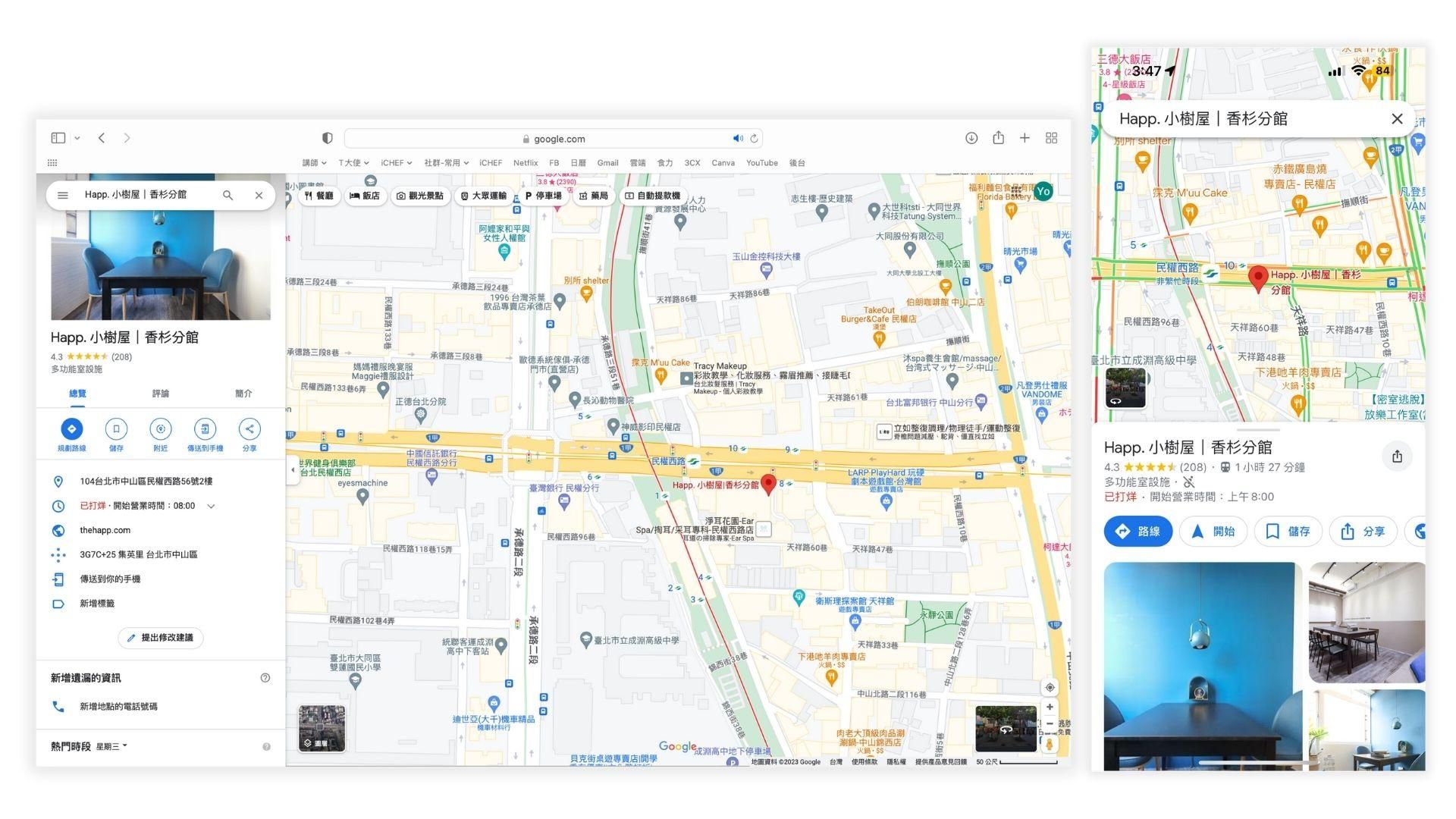 圖 4-3:實體課程活動的「 進入直播間 」會導至活動場地 Google Map 畫面
