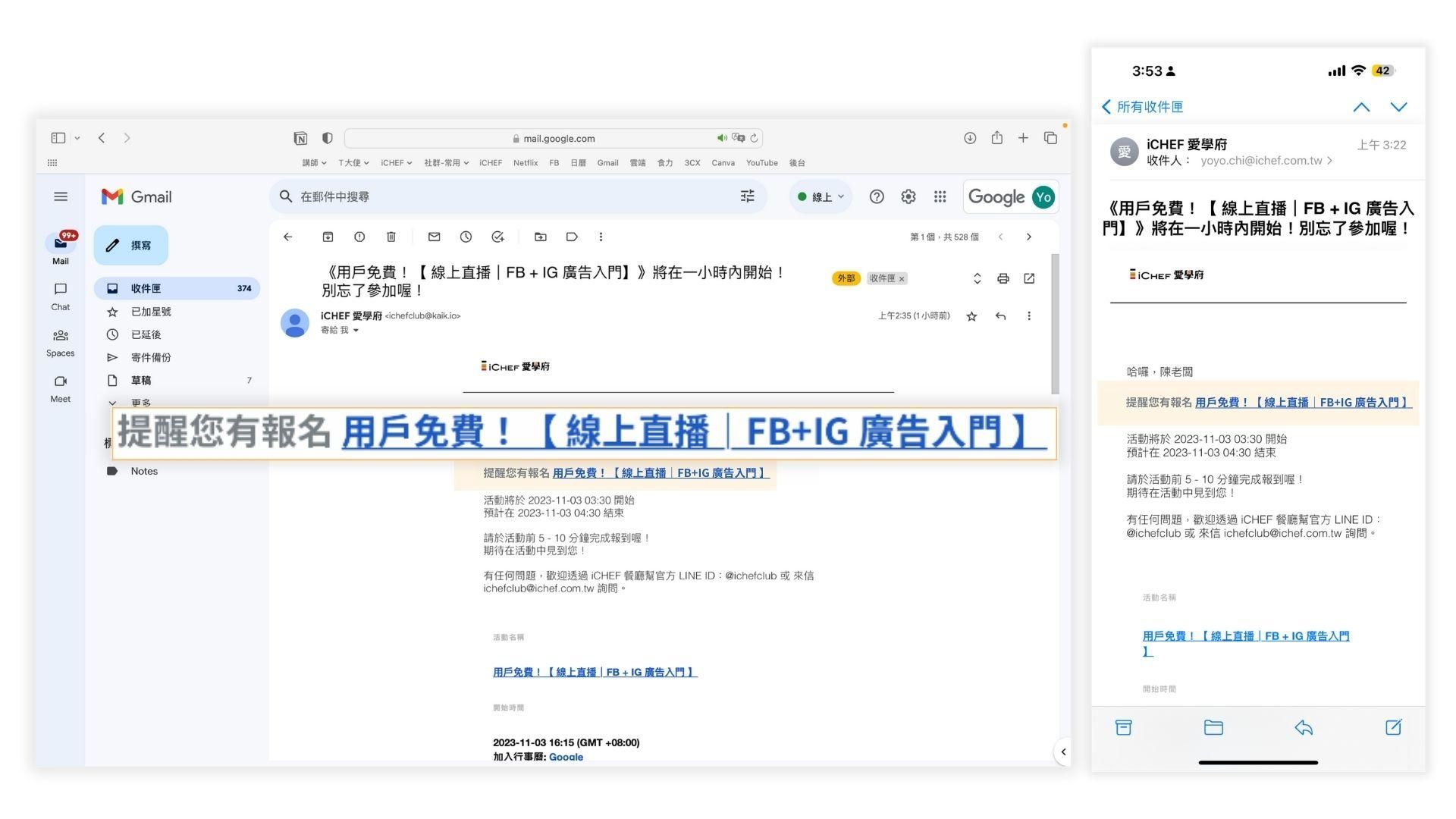 活動前一小時,你會收到 Email 提醒通知信如圖 4-1。