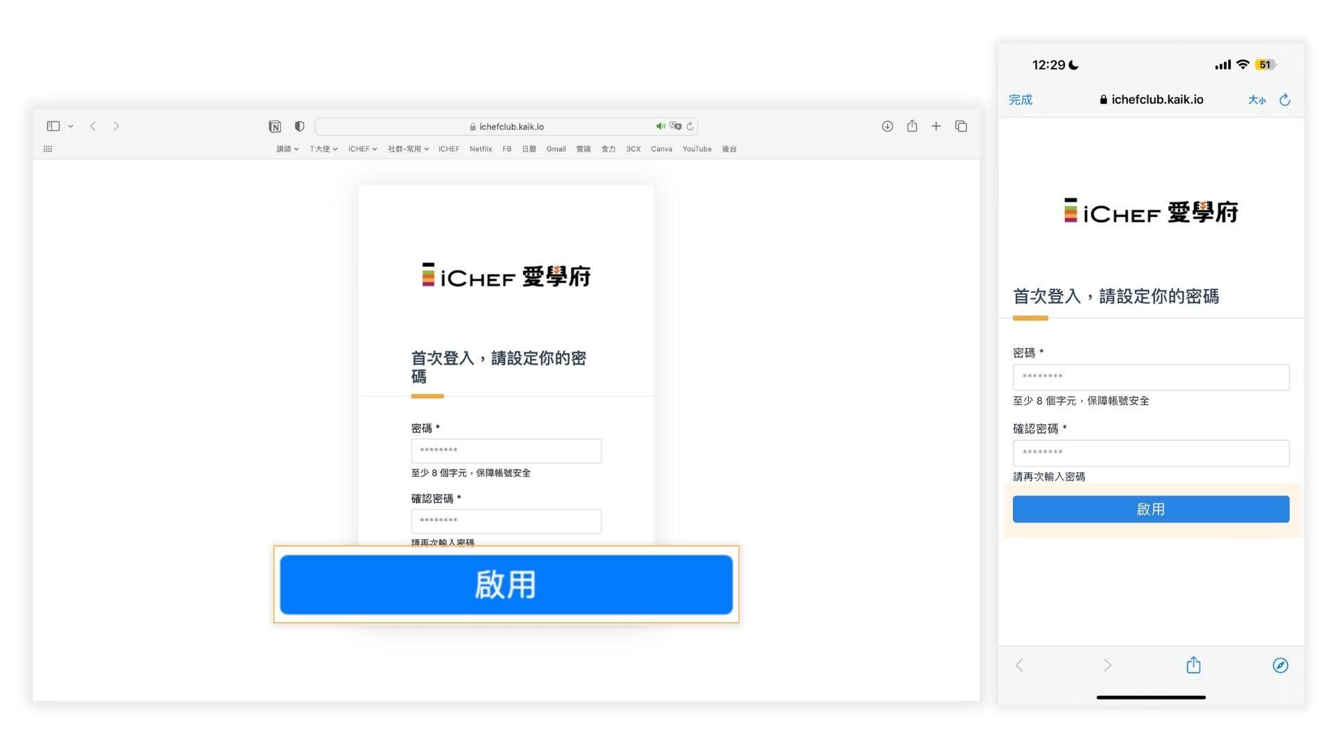 iCHEF 用戶報名課程活動前,請先 啟用帳號