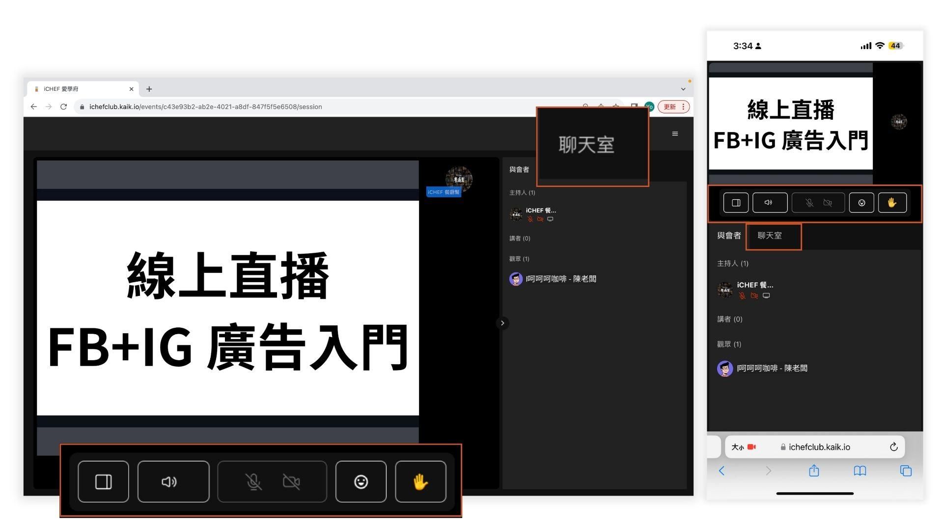 以下說明 iCHEF 用戶要怎麼「免費報名直播/實體課程活動」,以及「如何加入線上直播」、「實體課程活動報名注意事項」
